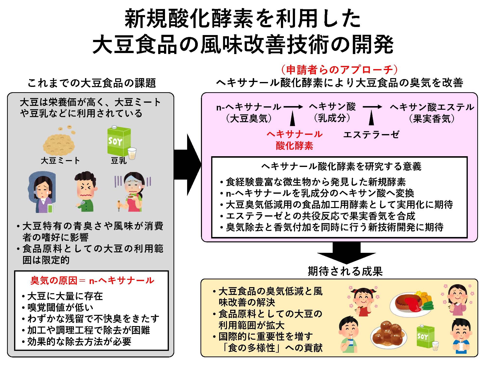 | 研究課題名 | 新規酸化酵素を利用した大豆食品の風味改善技術の開発 |